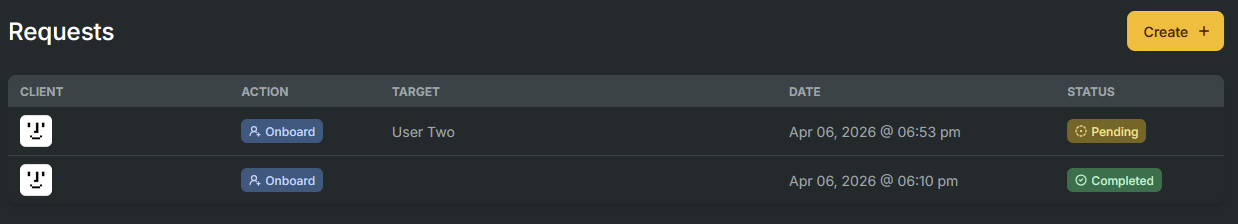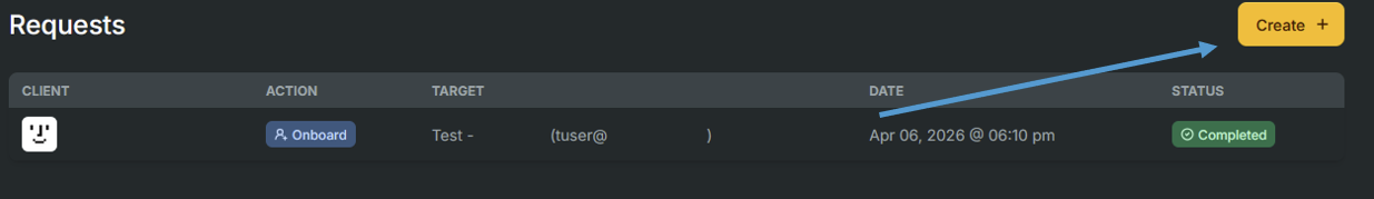 2. Click on 'Create +' to start the request