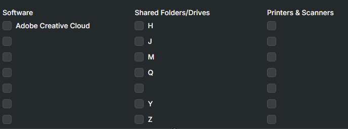 6. Choose what software, shared drives, and printers the user should get on their work PC