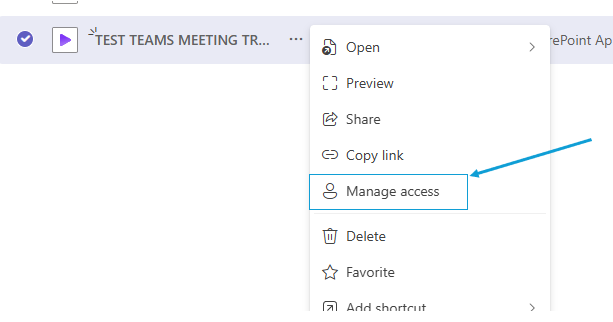 Select 'Manage Access' from the populated menu