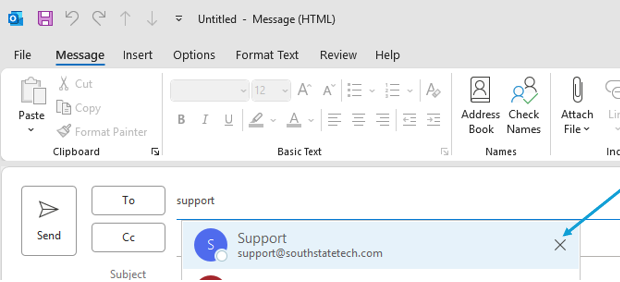 Click the 'X' on the populated contact you need to remove
